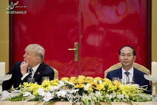 زمانیکه سخنرانی رئیس جمهور ویتنام پایان یافت، ترامپ که به گفته خودش اصلا اهل مشروبات و نوشیدنی های الکی نیست، گیلاس خودش را که مایعی سیاه رنگ در آن بود، بالا گرفت. یکی از مقام های کاخ سفید گفته است که گیلاس حاوی نوشابه کوکای رژیمی بود.