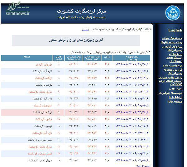 جدول/ پس لرزه های زمین لرزه کرمانشاه