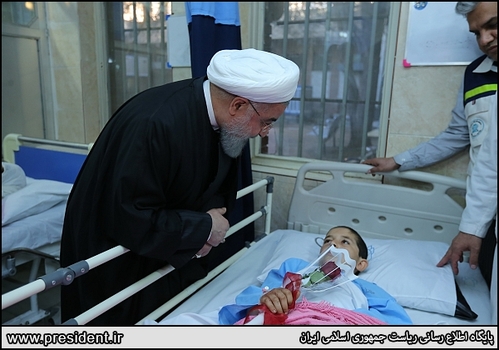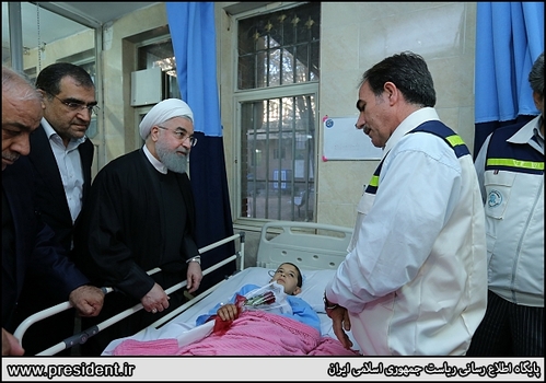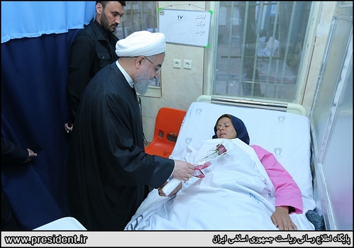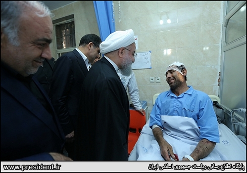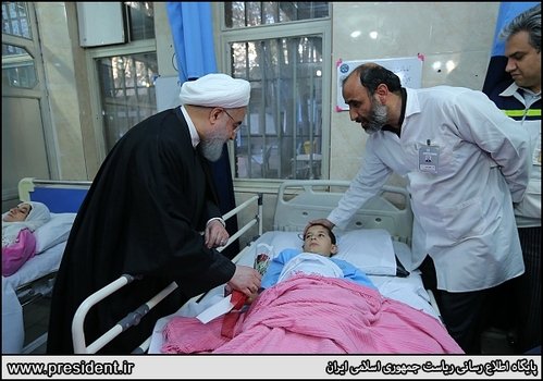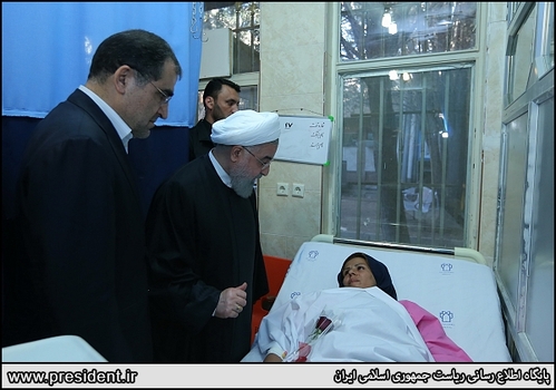 حسن روحانی با حضور در بیمارستان طالقانی کرمانشاه از مصدومان زلزله عیادت کرد