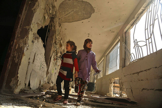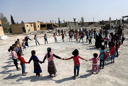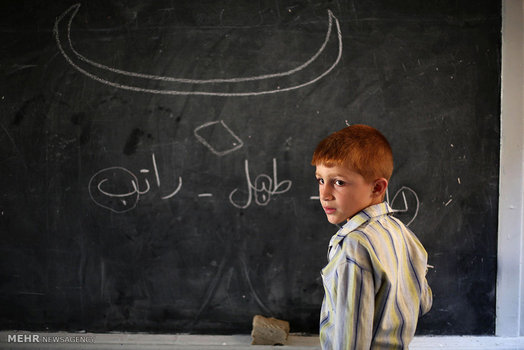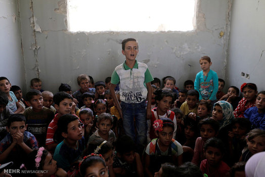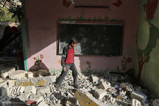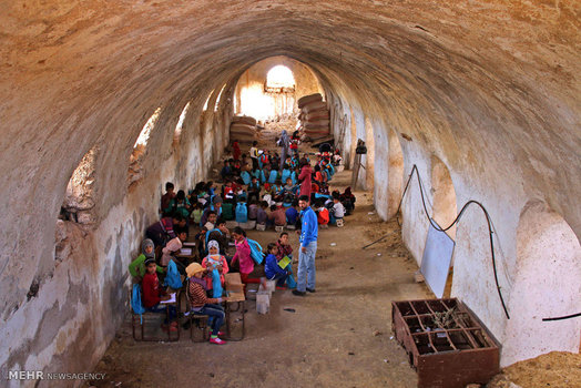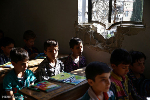 کودکان سوری ای که در مناطق جنگی این کشور زندگی می کنند، علیرغم خرابی ها و خطرات ناشی از جنگ داخلی، برای ادامه تحصیل در کلاس های درس حاضر می شوند.