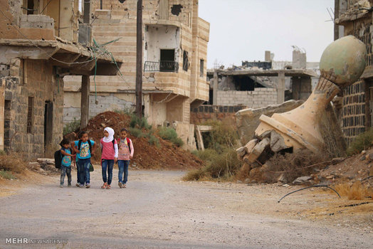 تصاویر/ رفتن به مدرسه در مناطق جنگی سوریه