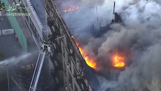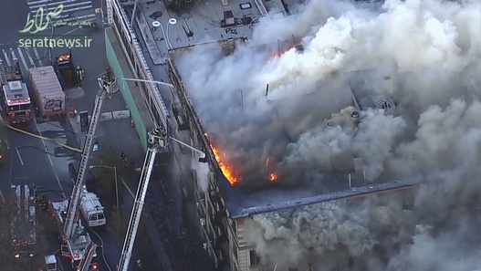 تصاویر/ آتشسوزی مهیب در یک برج مسکونی در نیویورک