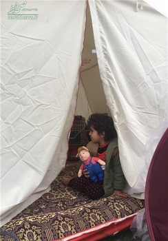 عکس/توزیع محموله اسباببازی میان کودکان زلزلهزده