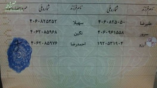 صفربیرانوند در پاسخ به این پرسش که امکان دارد تصویری از شناسنامه‌ی برادرزاده‌اش نشان دهد؟ گفت: الان برای کار به خارج استان رفته و مدتی است که از وی اطلاعی نداریم اما اگر بخواهید می‌توانم شماره‌ی ملی او را بگویم تا از طریق ثبت احوال مشخصاتش را ببینید.