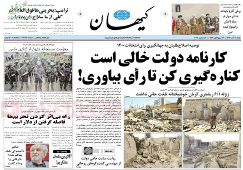 توصیه اصلاحطلبان به جهانگیری برای انتخابات ۱۴۰۰؛ هراس و هیجان در گروه ایران؛ حبیبالله چایچیان شاعر آئینی درگذشت؛ نهضت احیای زکات؛ بازی دولت با قیمت اقلام اساسی و بانکهای ناشنوا؛ از جمله عناوین صفحه اول روزنامههای امروز کشورند.