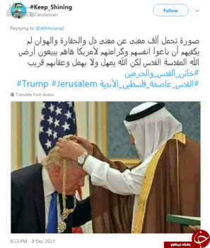به همین دلیل کاربران عرب شبکههای اجتماعی با ایجاد این هشتگ در پستهای خود یکی از مقصران اصلی در مورد اقدام جدید اسرائیل برای تغییر پایتخت از تل آویو به قدس و همراهی دونالد ترامپ و دولت ایالات متحده آمریکا از این انتقال را دولت عربستان سعودی می دانند.