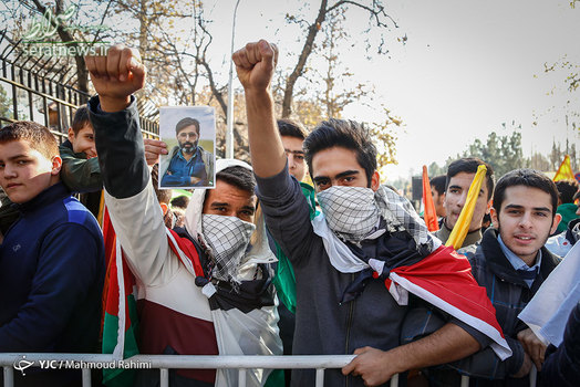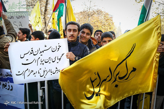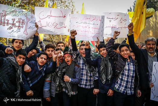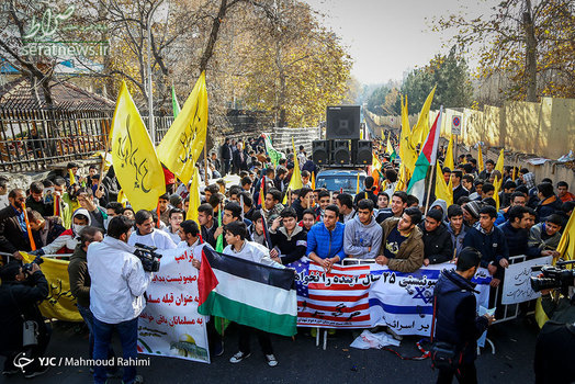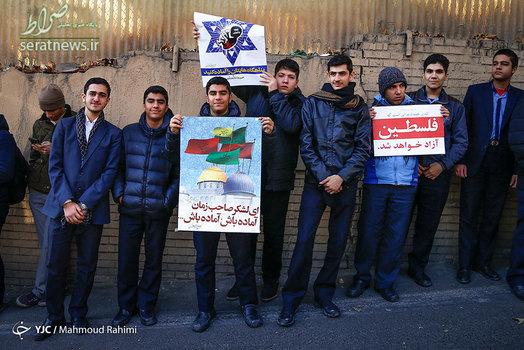 جمعی از دانش آموزان تهرانی در اعتراض به تصمیم اخیر ترامپ در انتقال سفارت امریکا به بیت المقدس در مقابل سفارت سوئیس در تهران تجمع کردند.
