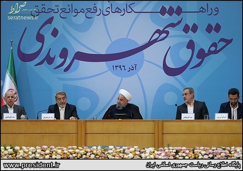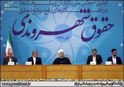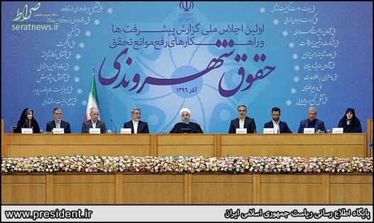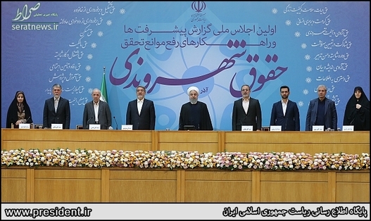 اولین اجلاس ملی گزارش پیشرفت ها و راهکارهای رفع موانع تحقق حقوق شهروندی با حضور رئیس جمهور آغاز شد. در این اجلاس محمدجواد ظریف، بیژن زنگنه، محمود علوی، ولی الله سیف، علی یونسی، عیسی کلانتری، علی ربیعی، لعیا جنیدی، محمد نهاوندیان، الهام امین زاده، عبدالرضا رحمانی فضلی، سورنا ستاری، عباس صالحی ،بطحایی، آذری جهرمی، حسینعلی امیری، شهیندخت مولاوردی، حسامالدین آشنا حضور دارند.