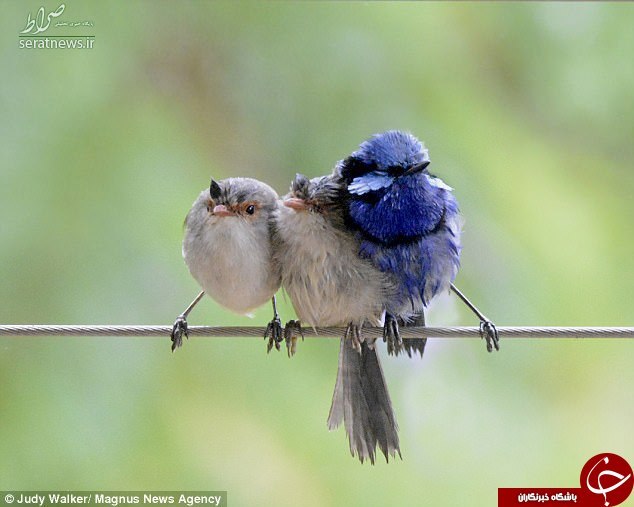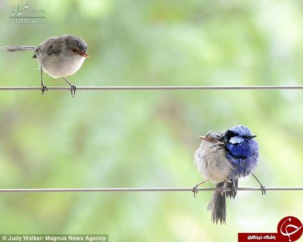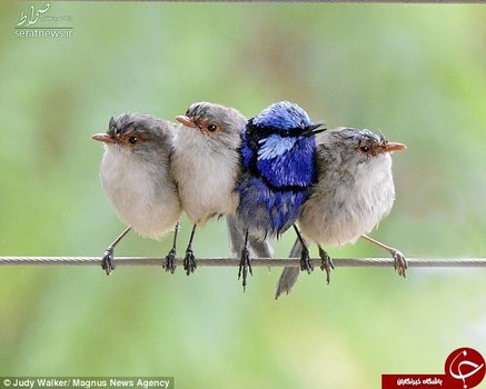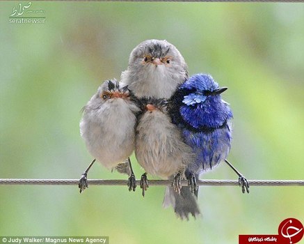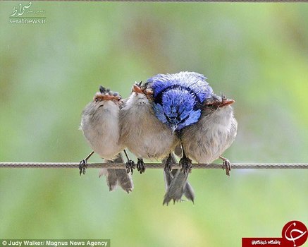 گنجشکها در باغ جودی واکر در کالگان واقع در غرب استرالیا بودند که شکار لنز دوربین عکاسها شدند. چهار پرنده در تلاشی خندهدار سعی در جاکردن خود روی یک قطعه سیم کرده بودند تا از خیسی زیر باران در امان بماند.