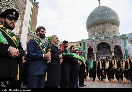 مراسم تعویض پرچم بارگاه ملکوتی حضرت عبدالعظیم حسنی(ع) عصر دیروز جمعه یکم دی ماه همزمان با شب میلاد آن حضرت با حضور ارادتمندان خاندان عصمت و طهارت برگزار شد.