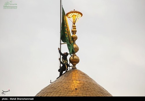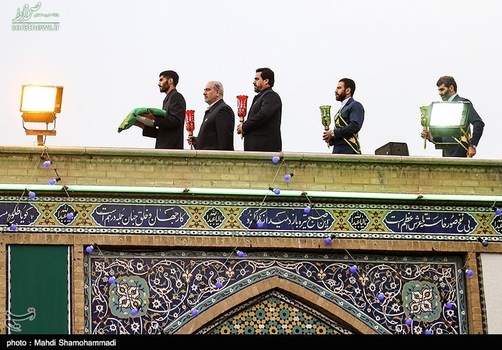 تصاویر/ تعویض پرچم حرم حضرت عبدالعظیم(ع) در شب میلاد