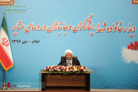 آیت الله آملی لاریجانی که به منظور بررسی مشکلات قضایی استان ایلام به این استان سفر کرده است، در جمع خانواده معظم شهدا، ایثارگران و جانبازان و روسای عشایر حاضر شد.