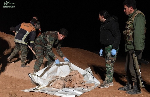 تصاویر/ کشف اجساد دهها شهید از گور دستهجمعی داعش