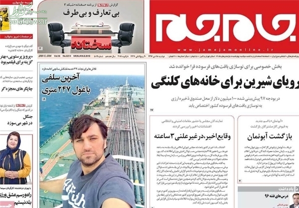 روزنامه جامجم تصویری از آخرین سلفی یکی از کارکنان نفتکش سانچی را منتشر کرد. روز گذشته کشتی نفتی ایرانی با کشتی چینی برخورد کرد که از سرنوشت ۳۰ خدمه ایرانی آن اطلاعاتی در دسترس نیست.