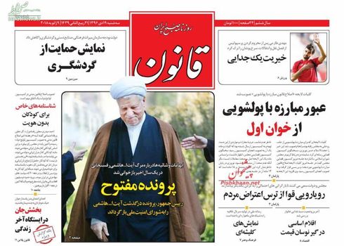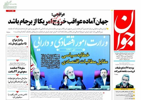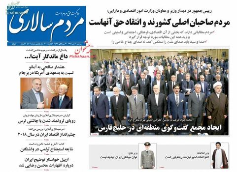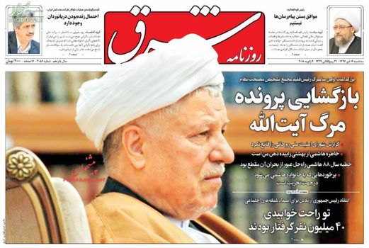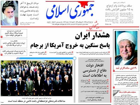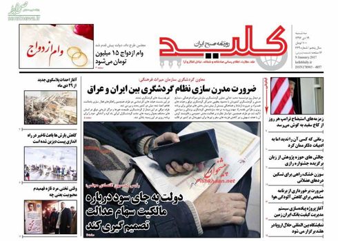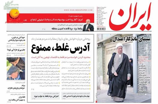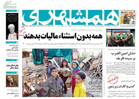 صفحه اول روزنامه های سهشنبه 19 دی 96