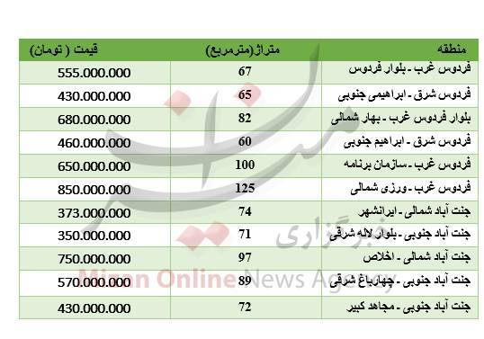جدول/قیمت آپارتمان ۵۰ متری در تهران