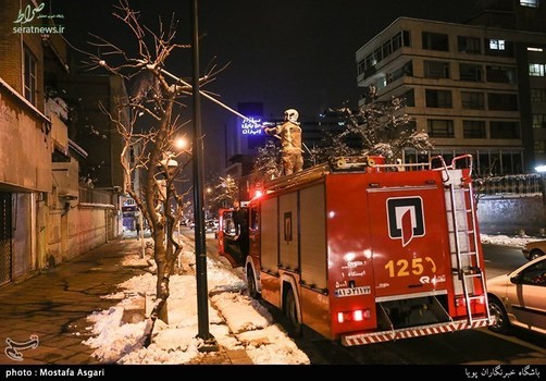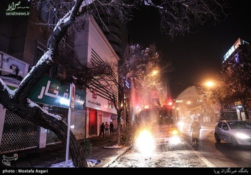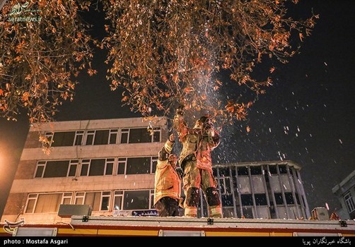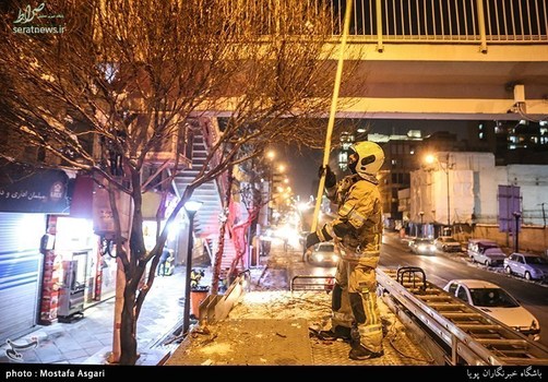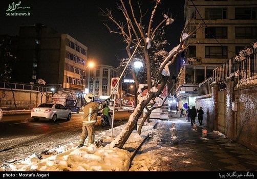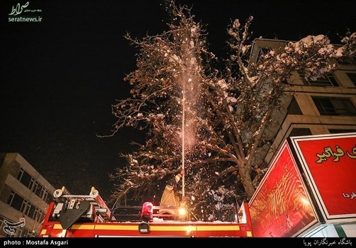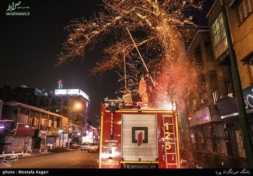آتشنشانان ایستگاه حسن آباد شب گذشته اقدام به برف تکانی از درختان سطح تهران کردند.