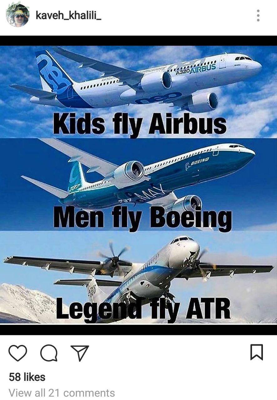 پست 10 روز قبل کاوه خلیلی خلبان دوم هواپیمای سقوط کرده ATR در اینستاگرام : بچه ها با ایرباس پرواز میکنند/ مردان با بوئینگ پرواز میکند / قهرمان با ATR پرواز میکند