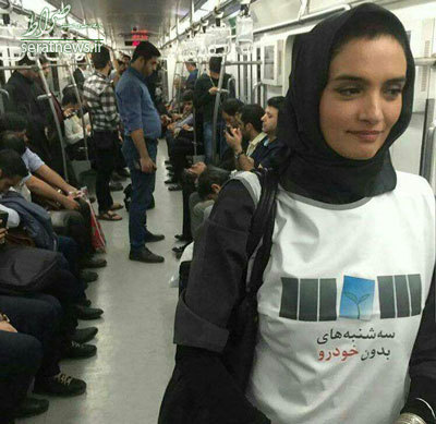 میترا حجار با شعار سهشنبههای بدون خودرو، از این وسیله نقلیه عمومی استفاده کرد.