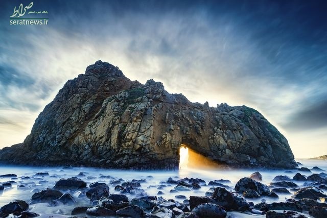 عکس امروز نشنال جئوگرافیک قوس صخره ای کی‌هول (Keyhole)، جاذبه مشهور کالیفرنیا را نشان می‌دهد که هرسال فقط در اوایل دی ماه می توان طلوع خورشید را از میان آن به تماشا نشست.