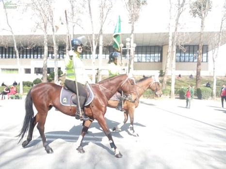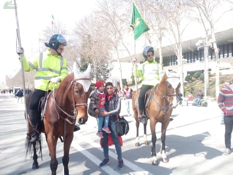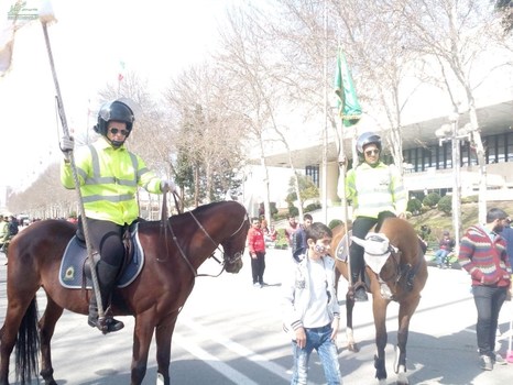 *پلیسهای اسب سوار درون مجموعه ورزشگاه آزادی مشغول گشتزنی هستند.
