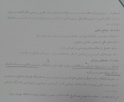 تصاویر اساسنامه مرکز مطالعات انقلاب اسلامی که در سال 86 به تصویب هیئت رئیسه دانشگاه تهران رسید