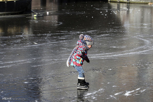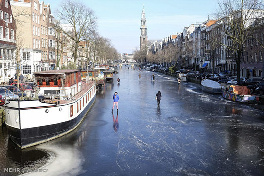 به دنبال سرمای شدید هوا در هلند کانال های آب عبوری از وسط شهر آمستردام یخ زده و فرصتی را برای شهروندان جهت اسکیت بازی فراهم کرده است.