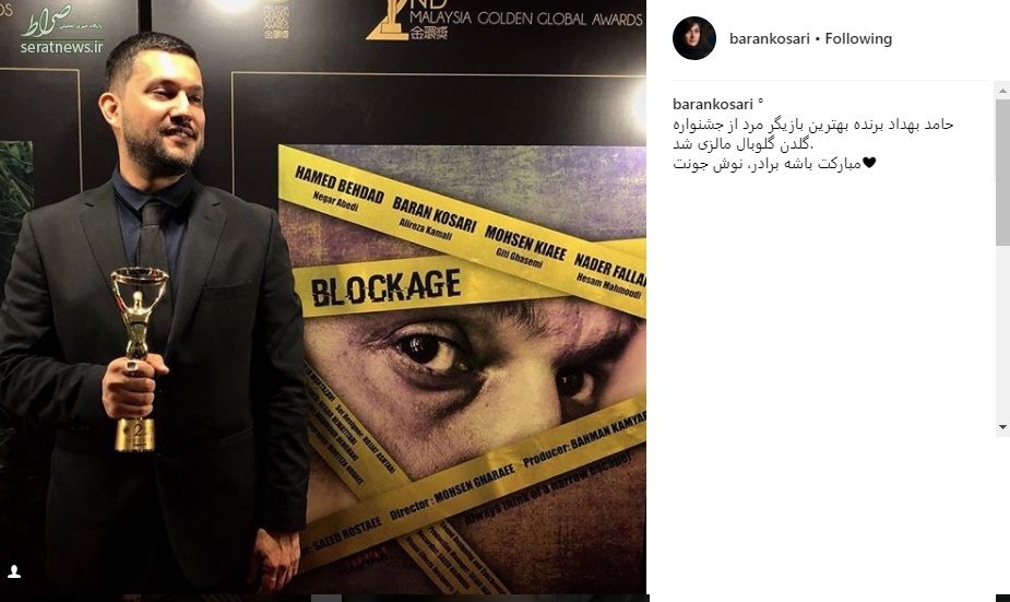 باران کوثری با انتشار عکسی از حامد بهداد در جشنواره گلدن گلوبال مالزی، در اینستاگرام نوشت: «حامد بهداد، برنده بهترین بازیگر مرد از جشنواره گلدن گلوبال مالزی شد. مبارکت باشه برادر، نوش جونت.»