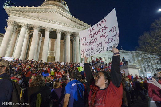 معلمان ایالت ویرجینیای غربی در آمریکا در اعتراض به عدم افزایش حقوقشان اقدام به اعتصاب و برگزاری تظاهرات کردند.