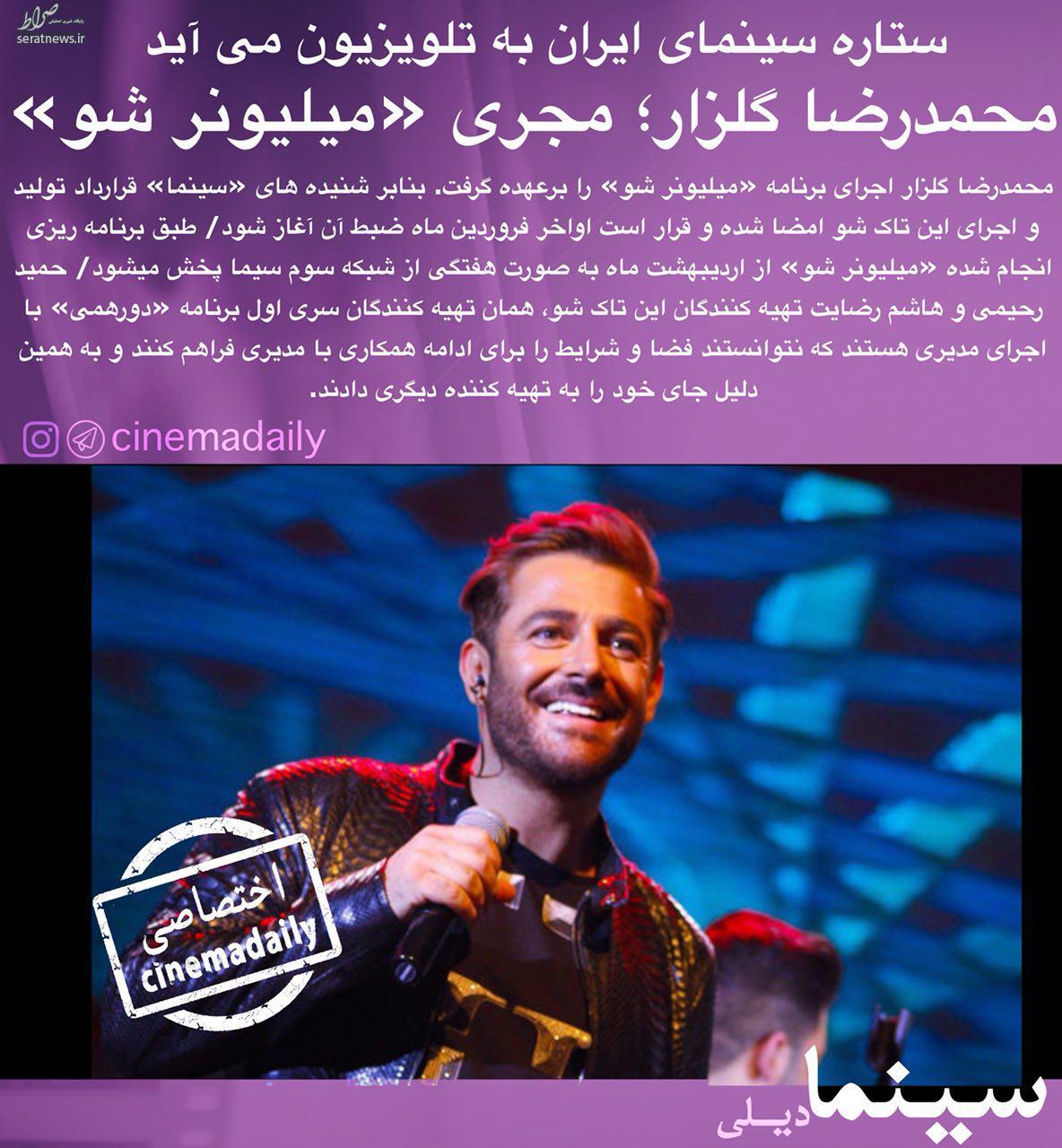 محمدرضا گلزار اجرای یک تاک شوی تلویزیونی را بر عهده گرفت. این برنامه به نام «میلیونر شو» قرار است از اردیبهشت به صورت هفتگی از شبکه سه پخش شود.