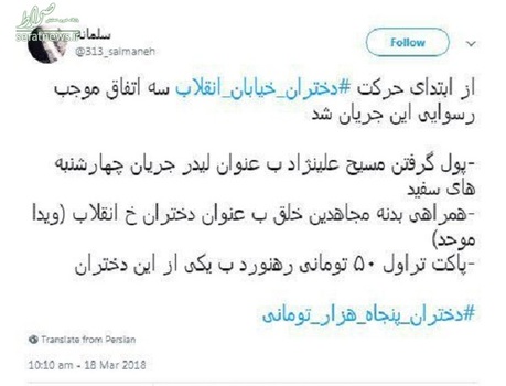 صراط: ماجرای دریافت پاکت پول توسط مریم شریعتمداری، در شبکههای اجتماعی سروصدای زیادی به پا کرده است. روز گذشته خبری منتشر شد مبنی بر اینکه شریعتمداری، دختری که اوایل ماه جاری در خیابان انقلاب به روی جعبه تقسیم مخابرات رفت و کشف حجاب کرد، از زهرا رهنورد، همسر میرحسین موسوی یکی از سران داخلی فتنه سال ۸۸ پاکتی پول هدیه گرفته است. این خبر را خود مریم شریعتمداری پس از آزادی از بازداشت در پستی توییتری منتشر کرد با این توضیح که پاکت را یک واسطه در کیف او قرار داده و واسطه به او گفته است که این هدیهای از طرف زهرا رهنورد است.
