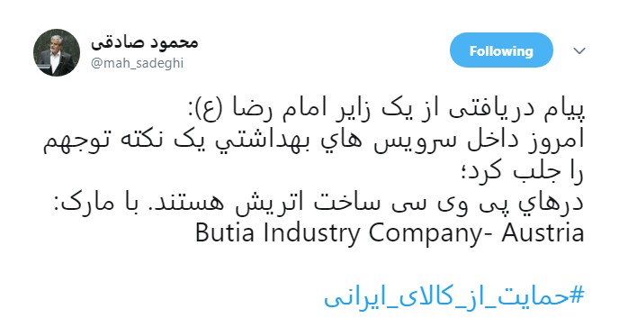 اگه منظور صادقی استفاده از کالای ایرانی چرا سراغ وزرا و هم کیشای خودش نمیره صادقی یه ادم....