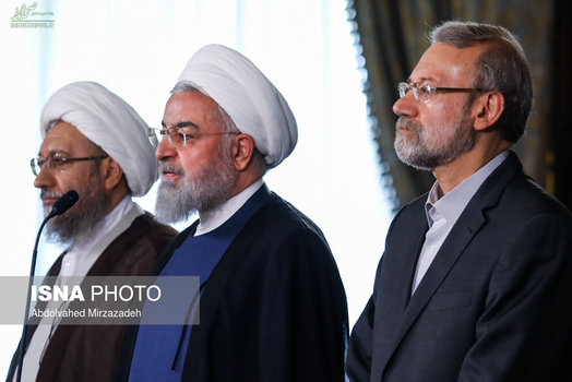 نخستین جلسه سران سه قوه در سال ۱۳۹۷ با حضور حسن روحانی، علی لاریجانی و آملی لاریجانی به میزبانی رئیسجمهور صبح دوشنبه (۶ فروردین) برگزار شد. رئیسجمهور در پایان این جلسه در گفتوگو با خبرنگاران به مسائلی نظیر کمآبی، توجه به تولید داخلی و سفرهای آتی خود به سه کشور خارجی اشاره کرد.