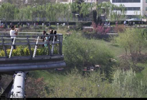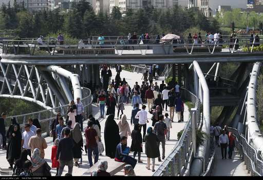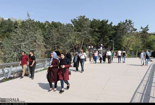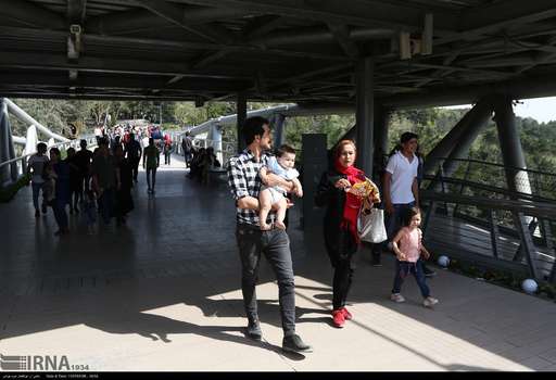تصاویرحضور گردشگران نوروزی در پل طبیعت، بوستان های آب و آتش و طالقانی در تهران را نشان می دهند.