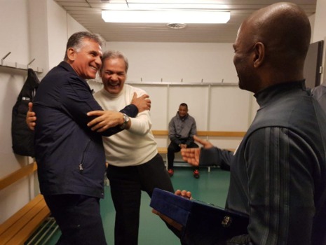 کیروش و اوسیانو همچنین از ماجر به خاطر انجام این دیدار دوستانه قدردانی کردند. ماجر هم در این مکالمه دوستانه به کارلوس کیروش به خاطر صعود ایران به جام جهانی تبریک گفت. صحبتهای او با اوسیانو نیز لحظات زیبایی را بین بازیکنان سابق اسپورتینگ لیسبون و پورتو رقم زد.