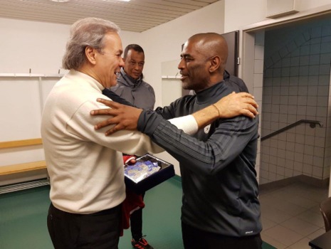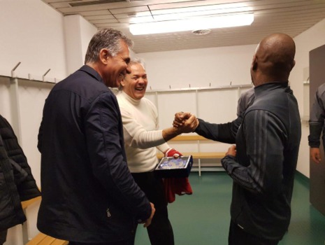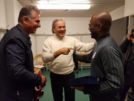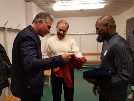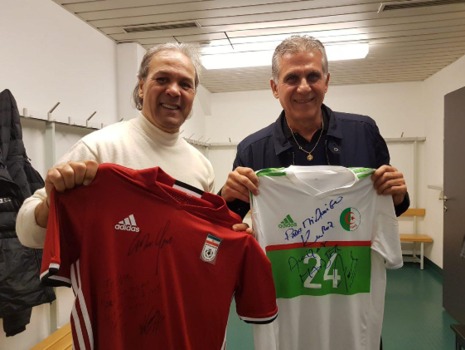 صراط: کارلوس کیروش و اوسیانو پیش از آغاز بازی ایران برابر الجزایر به رختکن رباح ماجرا سرمربی تیم الجزایر رفتند و پیراهن امضا شده تیم ملی ایران و همچنین شیلد مخصوص فدراسیون فوتبال ایران را به ماجر هدیه دادند.