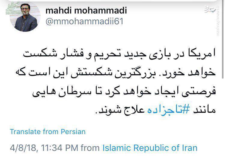 مهدی محمدی کارشناس امور سیاسی و رسانه در توییتر خود درباره بازی جدید آمریکا درباره تحریم های ایران نوشت: