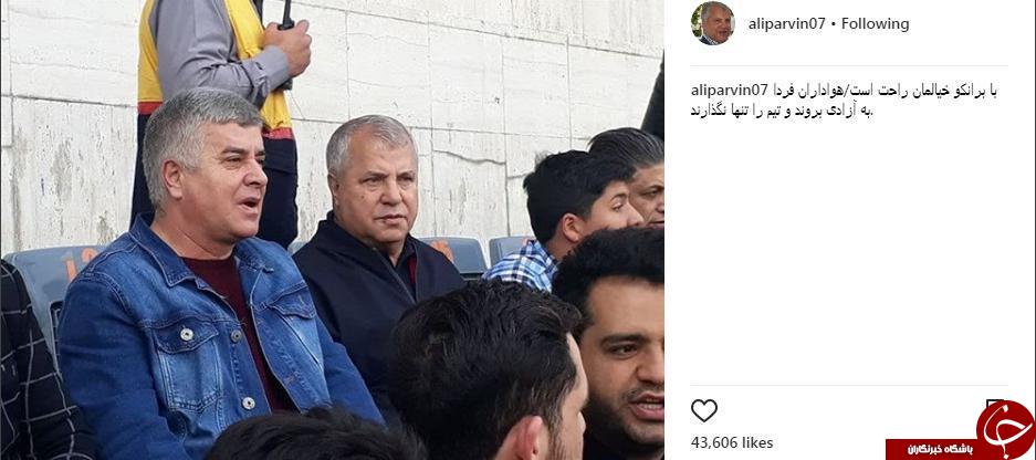 تیمهای پرسپولیس و السد قطر امروز از ساعت 19 و 30 دقیقه در آخرین بازی مرحله گروهی رقابتهای لیگ قهرمانان آسیا 2018 به مصاف یکدیگر میروند. این بازی برای مشخص شدن تیم اول گروه از اهمیت زیادی برخوردار است. به همین منظور علی پروین پیشکسوت تیم فوتبال پرسپولیس با انتشار پستی در صفحه اینستاگرام خود، به پرسپولیسی ها توصیه هایی کرد. علی پروین در صفحه اینستاگرام خود نوشت: با برانکو خیالمان راحت است/هواداران به آزادی بروند و تیم را تنها نگذارند.