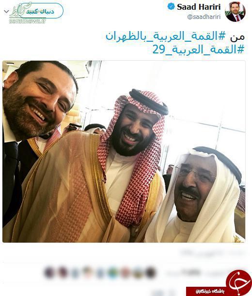 سعد الحریری، نخست وزیر لبنان در صفحه توییتر خود تصویر سلفیای از خود با محمد بن سلمان، ولیعهد عربستان و صباح الاحمد الجابر الصباح، امیر کویت طی حضورشان در نشست سران اتحادیه عرب در عربستان را منتشر کرد. گفتنی است؛ مرکز فرهنگی ملک عبدالعزیز در ظهران عربستان روز یکشنبه میزبان بیست و نهمین نشست سران اتحادیه عرب با مشارکت شمار زیادی از رهبران، رؤسا، پادشاهان و مقامهای عربی جهت بررسی راههای تقویت فعالیت و همکاری مشترک کشورهای عربی، مقابله با چالشها و تهدیدات منطقه عربی است.