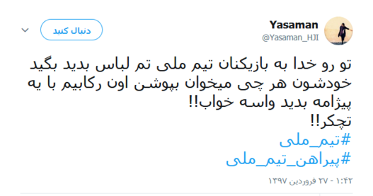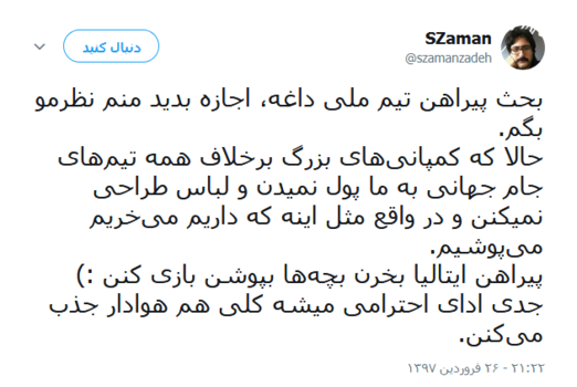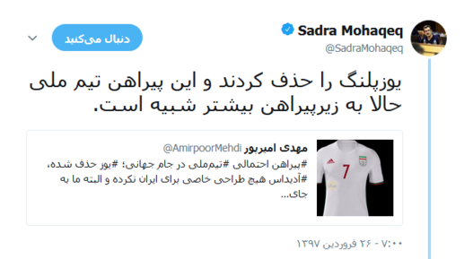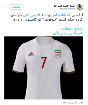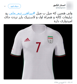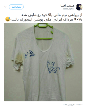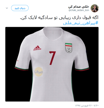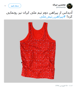 بر اساس شعار سال انتظار می رفت در طرح جدید پیراهن تیم ملی حمایت از کالای ایرانی دیده شود اما تولید پیراهن به یک نشان تجاری خارجی سپرده شده و لوگوی آن بر روی پیراهن نقش بسته است.