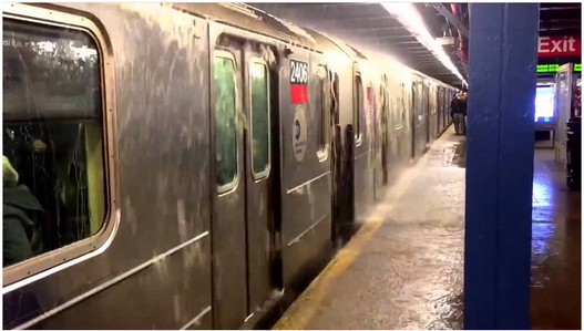 پیشتر اداره ملی هواشناسی آمریکا درباره احتمال سیل در نیویورک در عصر روز دوشنبه هشدار داده بود اما مسافران متروی یکی از ایستگاههای این شهر از نزدیک با سیل دست و پنجه نرم کردند.