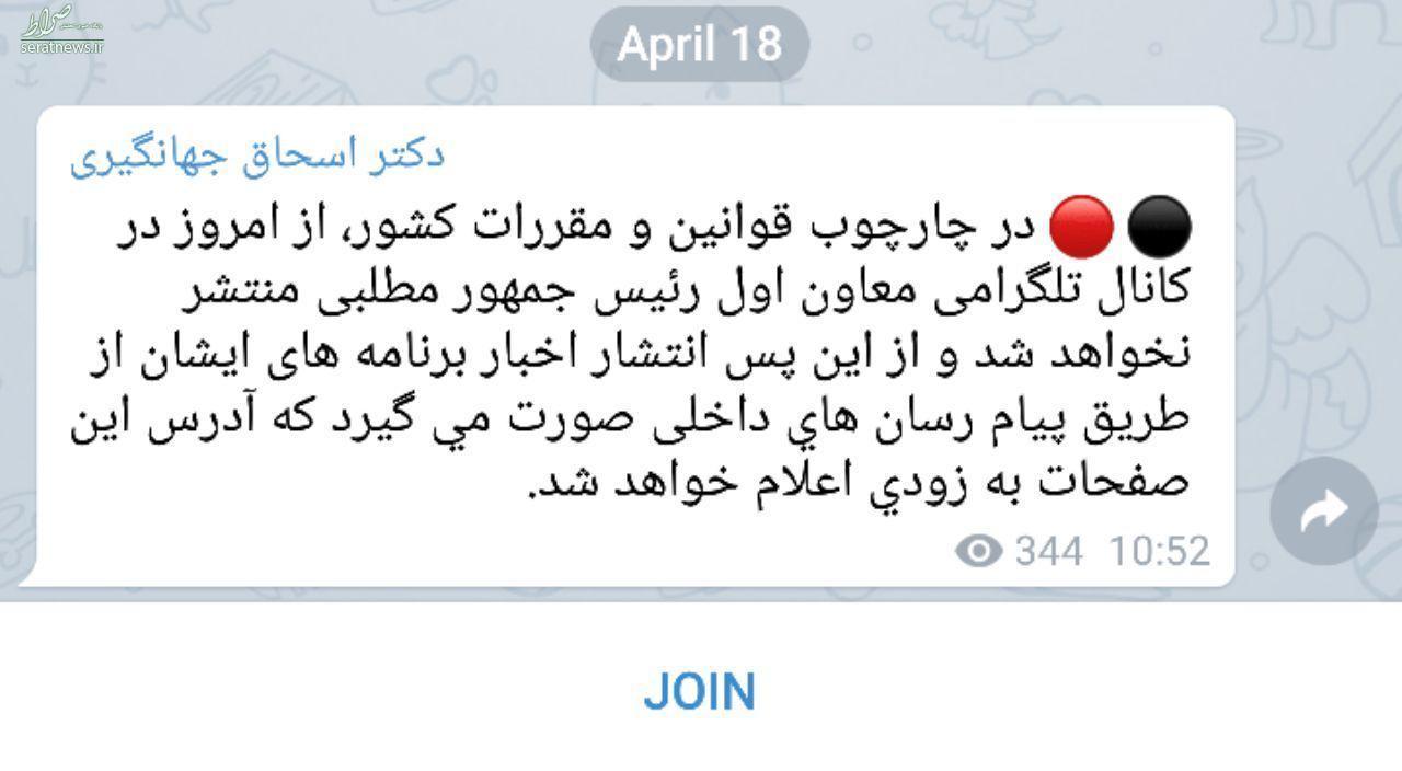 پایان کار اسحاق جهانگیری در تلگرام +عکس