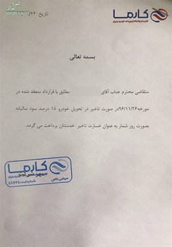 فردی که در بهمن ماه 96 یک خودروی سراتو سدان از این فروشگاه خریداری کرده به خبرنگار تسنیم می گوید: در زمان ثبت نام 50 میلیون تومان به حساب آنها واریز کردم و در قرارداد درج شد که تحویل خودرو ظرف 17 روز آینده است، در صورت تأخیر هم سود سالانه 18 درصد روز شمار به خریداران پرداخت می کنیم. در حال حاضر بیش از دو ماه از خرید من می گذرد و هنوز فروشگاه خودرویی به بنده تحویل نداده است.
