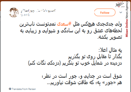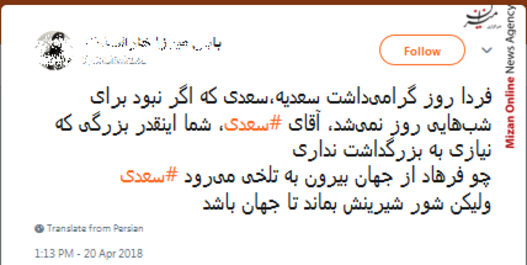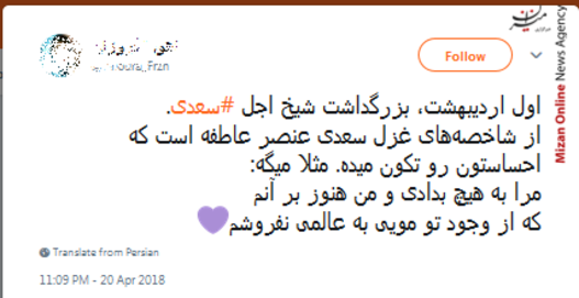 کاربران شبکه های اجتماعی نیز روز سعدی را گرامی داشتند که درادامه می خوانید ....