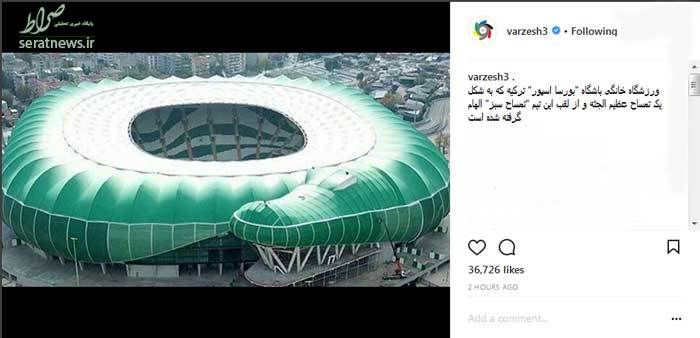 ورزشگاه خانگی باشگاه «بورسا اسپور» ترکیه که به شکل یک تمساح عظیمالجثه و از لقب این تیم «تمساح سبز» الهام گرفته شده است.