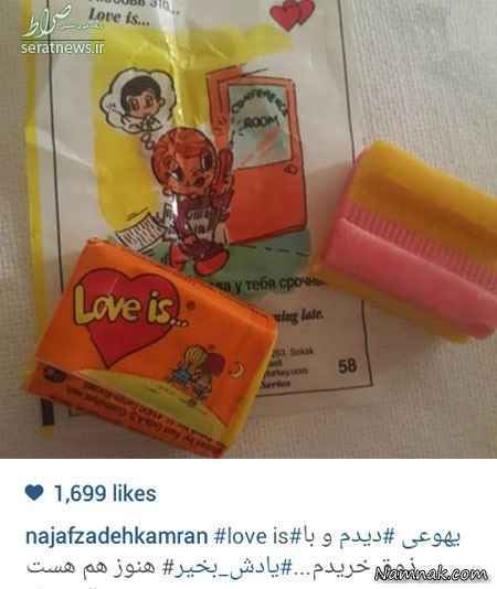 کامران نجف زاده،خبرنگار و مجری صدا و سیما در جدیدترین پست خود از ذوق خرید آدامس Love is که به نوعی نوستالوژی و خاطره ای از دوران کودکی میتوان نام برد نوشت.