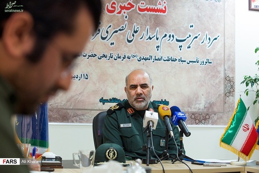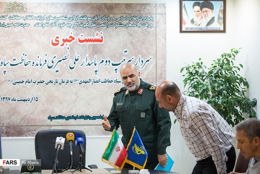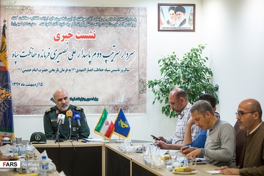 نشست خبری سردار علی نصیری فرمانده حفاظت سپاه پاسداران صبح امروز شنبه ۱۵ اردیبهشت ۱۳۹۷ با حضور اصحاب رسانه در مرکز فرماندهی سپاه حفاظت انصار المهدی (عج) برگزار شد. فرمانده حفاظت سپاه با بیان اینکه سپاه در طول 39 سال گذشته وظیفه حفاظت از شخصیت های نظام را برعهده داشته، گفت: با همتی که انجام گرفته کمترین حادثه ترور شخصیتها را داشته ایم.