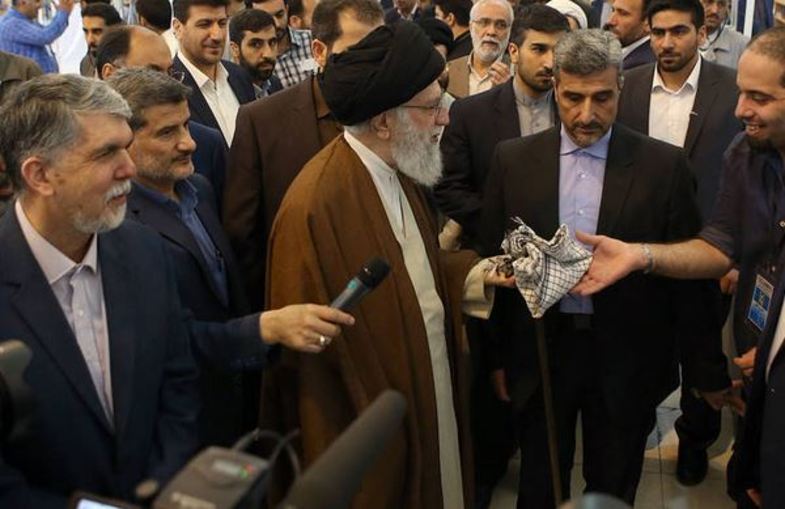 در حاشیه بازدید رهبرانقلاب از سی و یکمین نمایشگاه بینالمللی کتاب تهران در مصلای امام خمینی رحمهالله چفیه خود را به یکی از فروشندگان کتاب در نمایشگاه هدیه دادند.