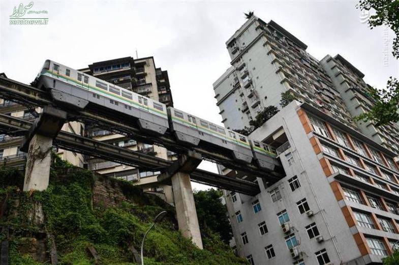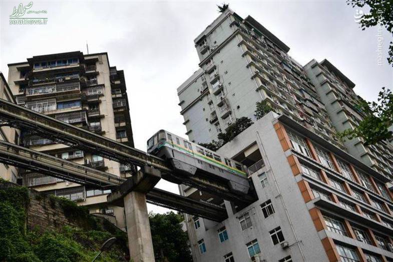 مسیر راه آهن در شهر چونگ کینگ چین از مسیر جالبی عبور میکند البته این راه نه یک جنگل زیباست و نه یک دره شگفت انگیز بلکه از بین طبقه 6 تا 8 ساختمانی عبور میکند.