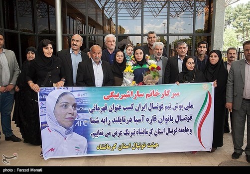 سارا شیربیگی بازیکن تیم ملی فوتسال بانوان ایران در میان استقبال هوادران کرمانشاهی وارد فرودگاه آیت الله اشرفی اصفهانی شهر کرمانشاه شد.سارا شیربیگی توانست با زدن نه گل به عنوان برترین گلزن فوتسال بانوان آسیا دست پیدا کند و تیم ملی فوتسال ایران نیز برای دومین بار پیایی قهرمان فوتسال اسیا شد